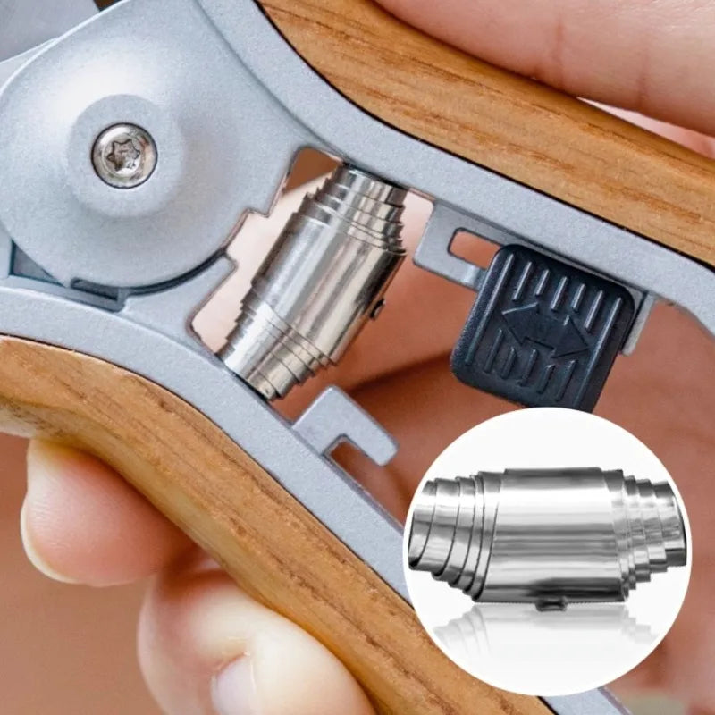 Steel spring mechanism provides automatic rebound, reducing effort and hand strain with every cut.